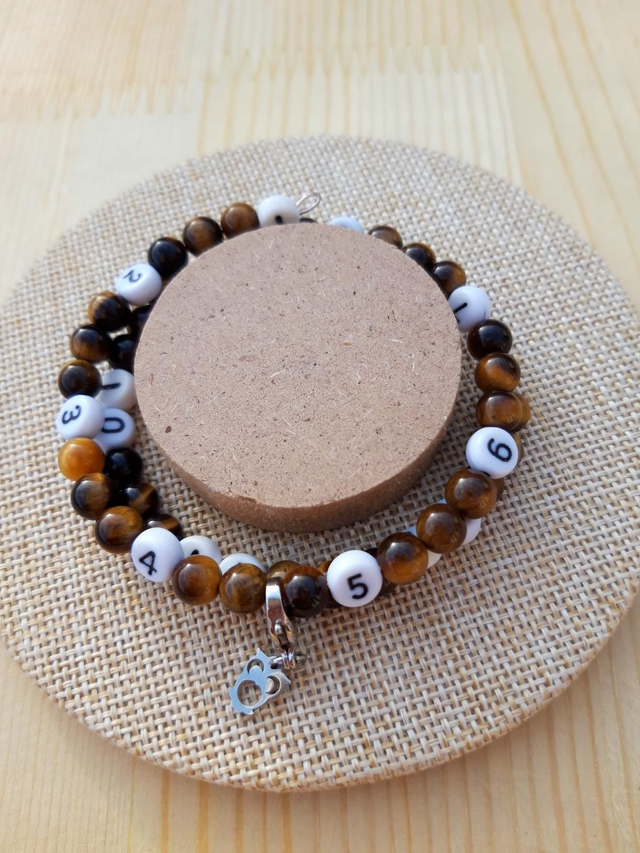 Pierres semi précieuses ( œil du tigre ) avec mousqueton et breloque.